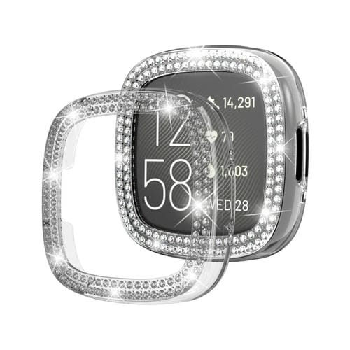 Caja de Reloj para Fitbit Versa 4 Galvanoplastia Doble Fila Diamante (Plata)