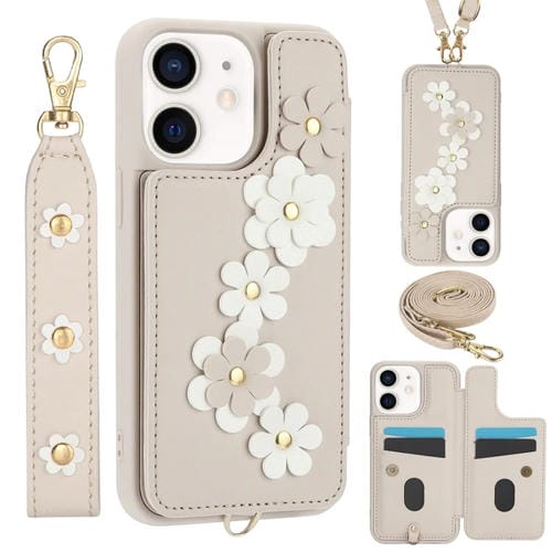 Funda para Teléfono iPhone 11 Cuero Estampado de Flores Cruzadas (Blanco)