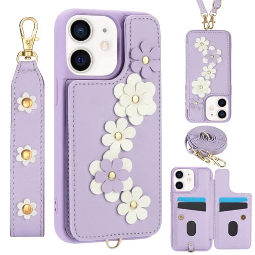Funda de Cuero para Teléfono iPhone 11 Estampado de Flores Cruzadas (Púrpura)