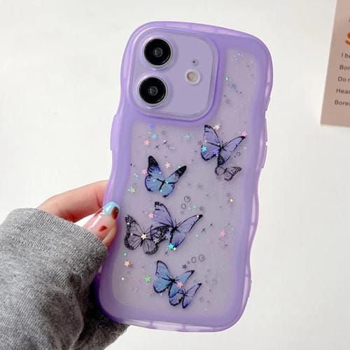 Funda híbrida TPU PC con borde ondulado y mariposa para iPhone 11 (Morado)