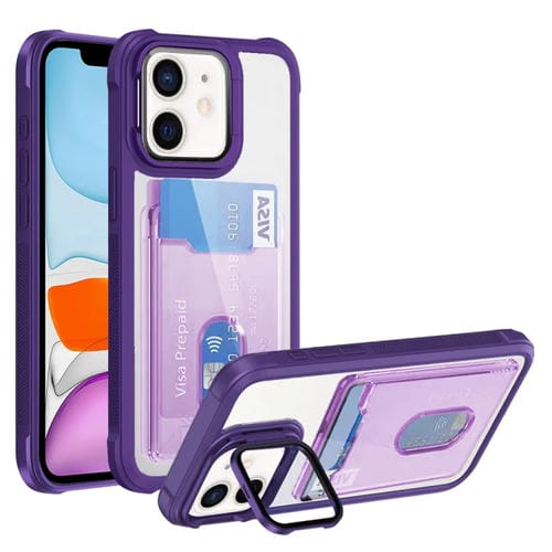 Estuche para Teléfono iPhone 11 TPU Híbrido Acrílico con PortaTarjetas (Púrpura)