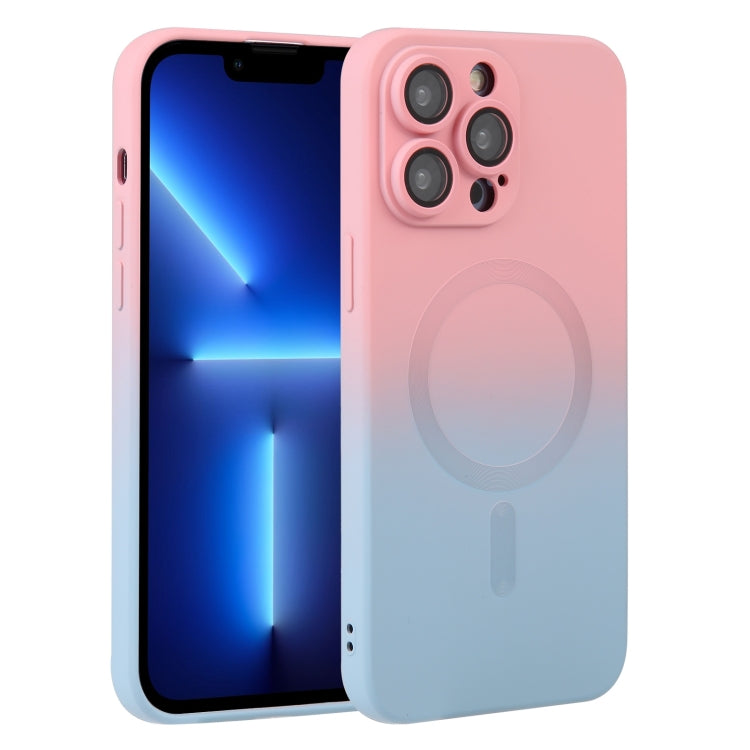 Funda para iPhone 13 Pro Liquid TPU Silicone Gradient Magsafe (Rosa Azul)