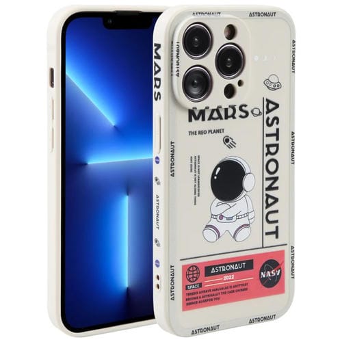 Funda de teléfono iPhone 13 Pro Patrón de Astronauta Borde Recto Silicona (Blanco)