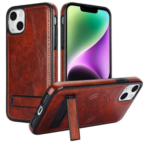 Funda para Teléfono iPhone 14 Plus Magsafe Soporte Invisible Cuero Retro (Marrón)