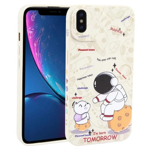 Estuche de teléfono TPU iPhone Xs X patrón de astronauta esmerilado (Blanco)