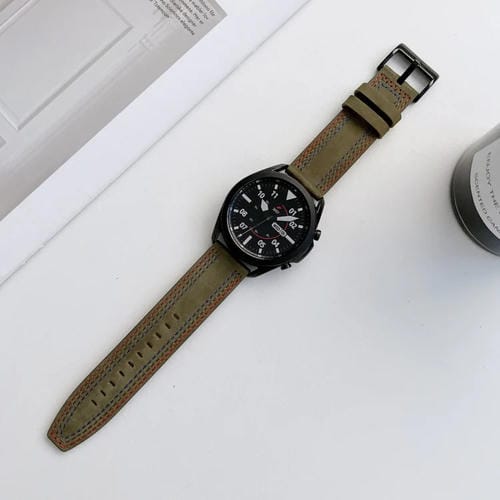 Correa de Reloj Cuero Costura Tricolor Universal 22mm (Verde Militar)