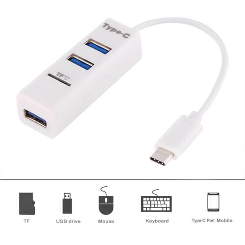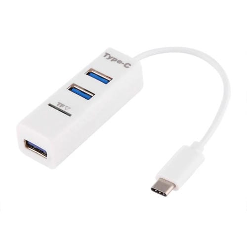 Hub USB 3 Puertos Combo 2 En 1 USB-C / Type-C 3.1 a USB 2.0 con Lector de Tarjetas TF (Blanco)
