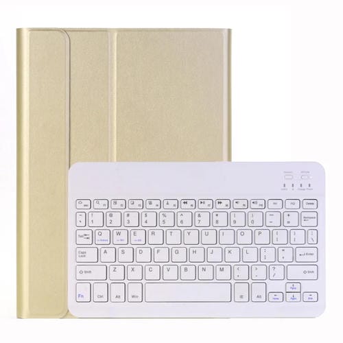 Funda de Cuero con Teclado Bluetooth Desmontable A102 para iPad 10,2 Pulgadas con Soporte (Dorado)