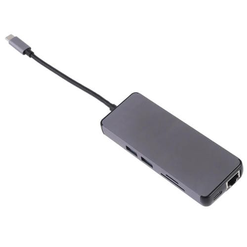 Adaptador Lector de Tarjetas 8 en 1 Tipo C a HDMI, USB 3.0, Tipo C, LAN, VGA, TF, SD (Gris)
