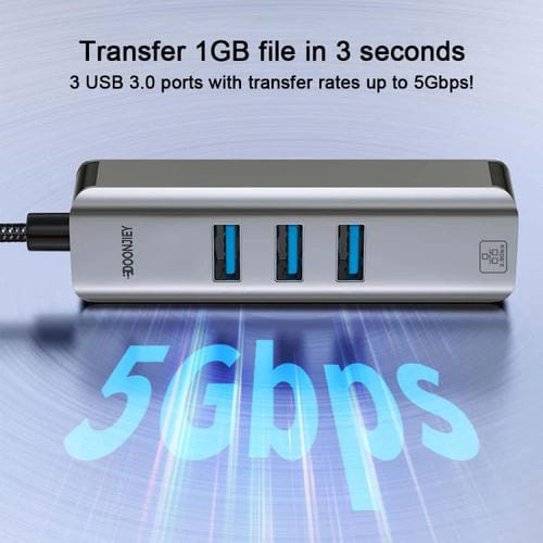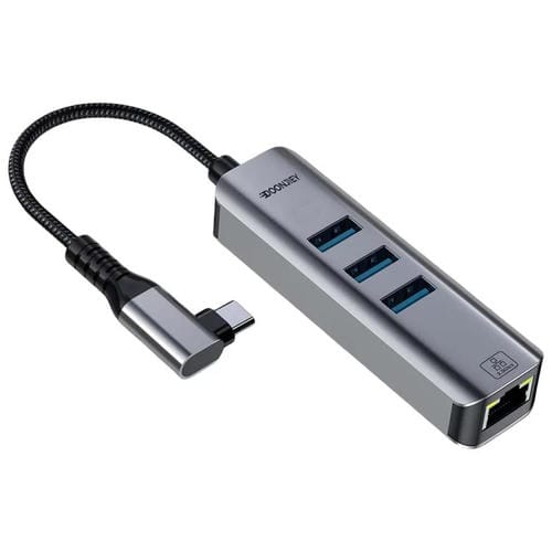 Adaptador expansor de concentrador USB-C/Tipo-C a RJ45 y 3 USB-A con carcasa de aleación de aluminio (gris)