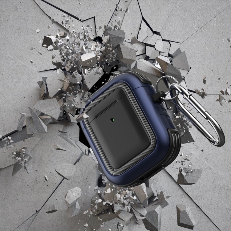 Auriculares inalámbricos funda protectora TPU + PC a prueba de choques con mosquetón para AirPods 1/2 (Negro + Oro)