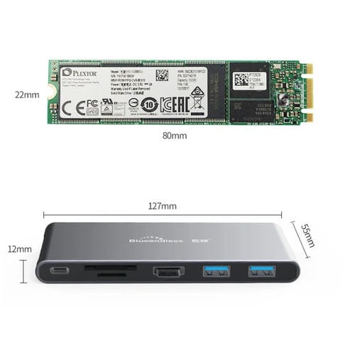 • 1x Hub Expansion Dock 6 en 1 Blueendless Type-C USB-C con Unidad de Estado Sólido M.2 NGFF