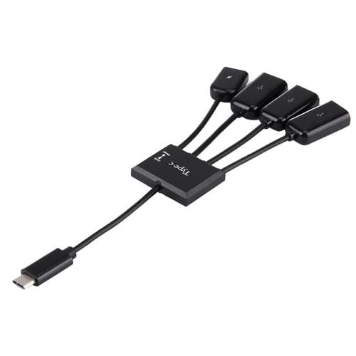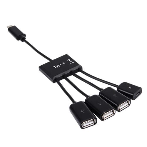 Cable portátil 4 en 1 USB-C / Type-C a 3 puertos USB 2.0 OTG Hub con fuente de alimentación Micro USB