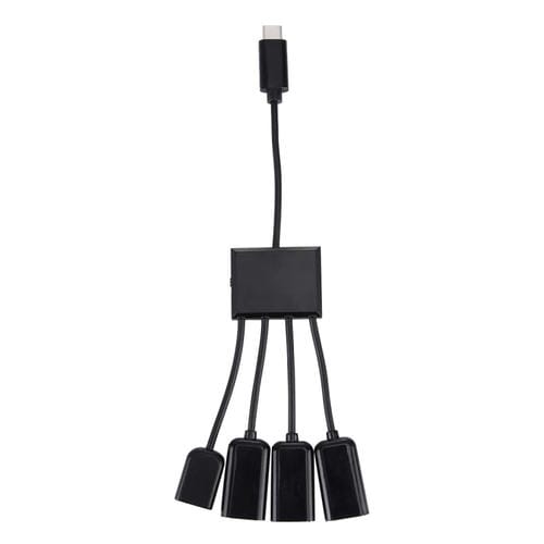• 1x Cable Portátil 4 en 1 USB-C / Type-C a 3 Puertos USB 2.0 OTG Hub con fuente de Alimentación Micro USB