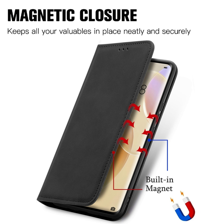 Capa retro de la piel de la piel de la piel con la funda de cuero horizontal magnética con soporte y tragamonedas y marco de la billetera y foto para Huawei Nova 8 Pro (Negro)