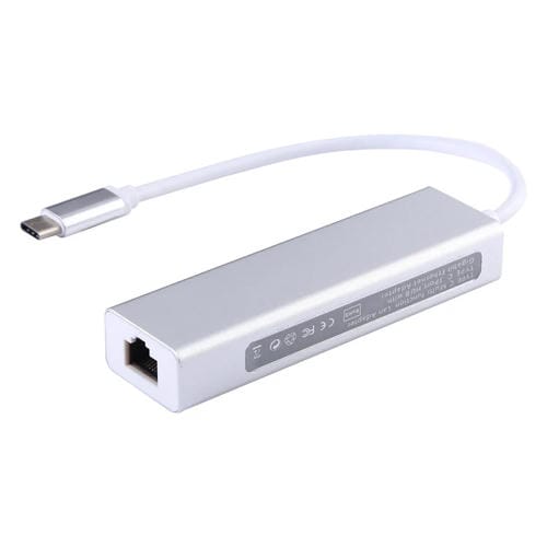 Carcasa de Aluminio con 3 Puertos USB 3.0 Hub y Adaptador Ethernet Gigabit USB-C / Type-C