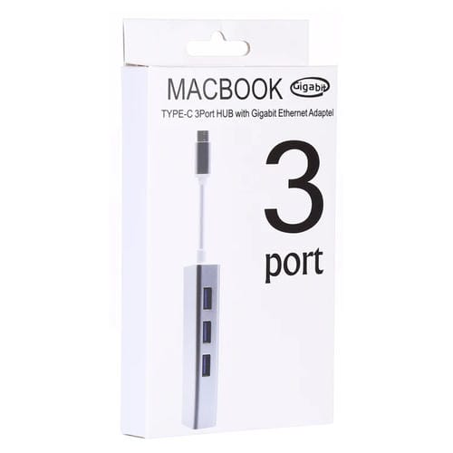 • 1x Carcasa de Aluminio con 3 Puertos USB 3.0 Hub y Adaptador Ethernet Gigabit USB-C / Type-C