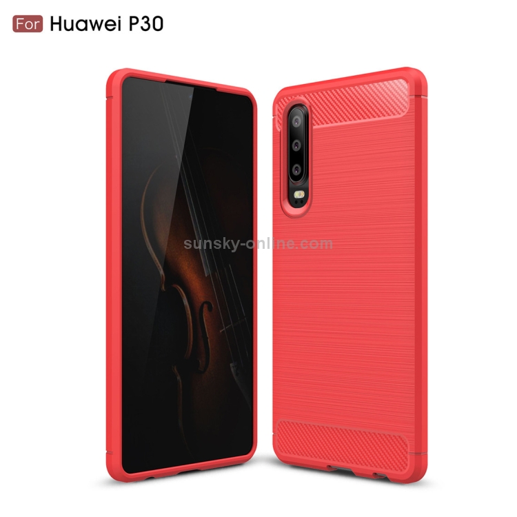 Carcasa TPU Fibra de Carbono para Huawei P30 a Prueba de Golpes (Rojo)