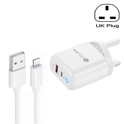 Cargador de teléfono móvil Pd04 Type-C y USB con cable USB A a 8 pines (Blanco)
