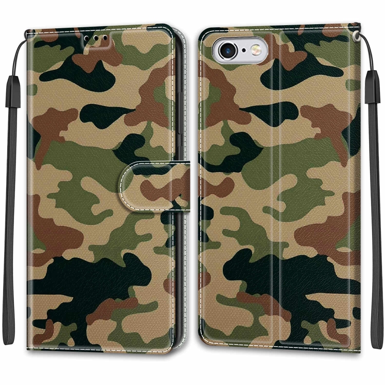 Funda Cuero Flip PU iPhone 6S 6 Cierre Magnético Soporte Ranuras Tarjeta (Camuflaje Amarillo Verde)