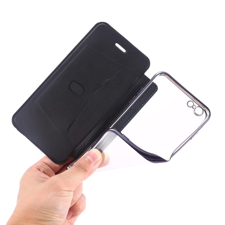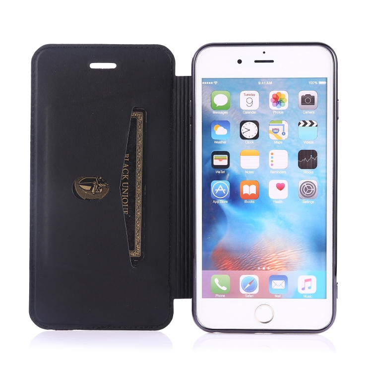 Funda de Cuero Flip Horizontal + TPU para iPhone 6 Plus y 6S Plus Clavo de Bronceado Pu con Soporte y Ranura para Tarjeta (Negro)