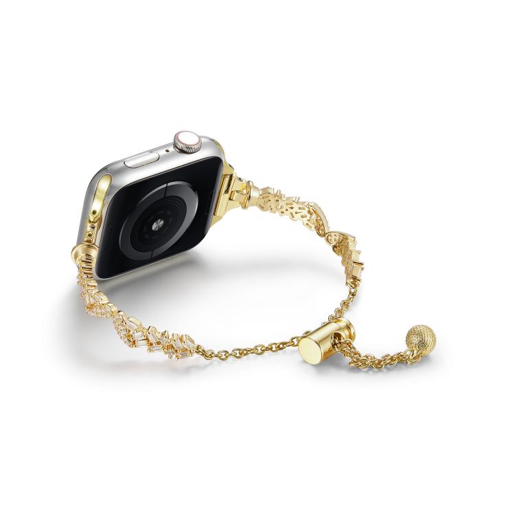 Correa de aleación de zinc con diamantes triturados Wings para Apple Watch de 42 mm, 41 mm, 40 mm y 38 mm (dorada)