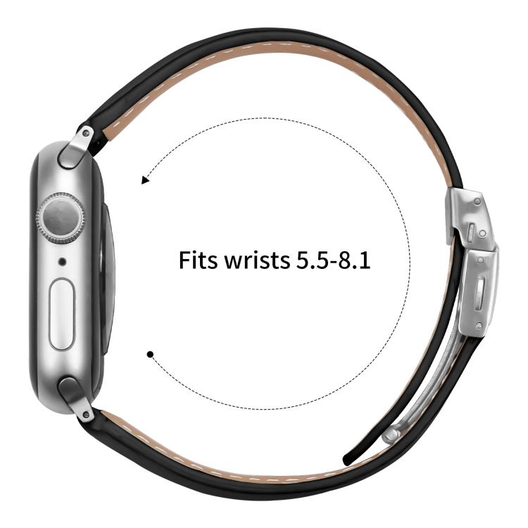 Correa de cuero con hebilla trasera de tortuga plateada con textura de lichi para Apple Watch de 46 mm, 49 mm, 45 mm y 44 mm (negra)