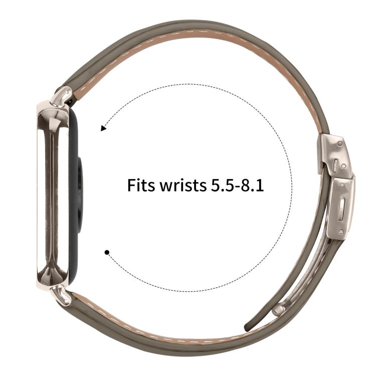 Correa de cuero con hebilla trasera de tortuga y textura de lichi para Xiaomi Smart Band 9 Pro y Redmi Watch 5 (gris)
