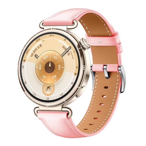 Correa de cuero genuino con hebilla plateada para Huawei Watch GT 6 de 41 mm (rosa)