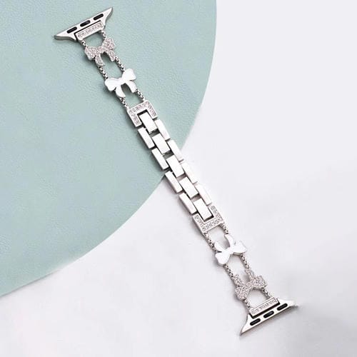 Correa de metal con diamantes y cadena de lazo para Apple Watch de 42, 44, 45, 46 y 49 mm (luz de estrellas)