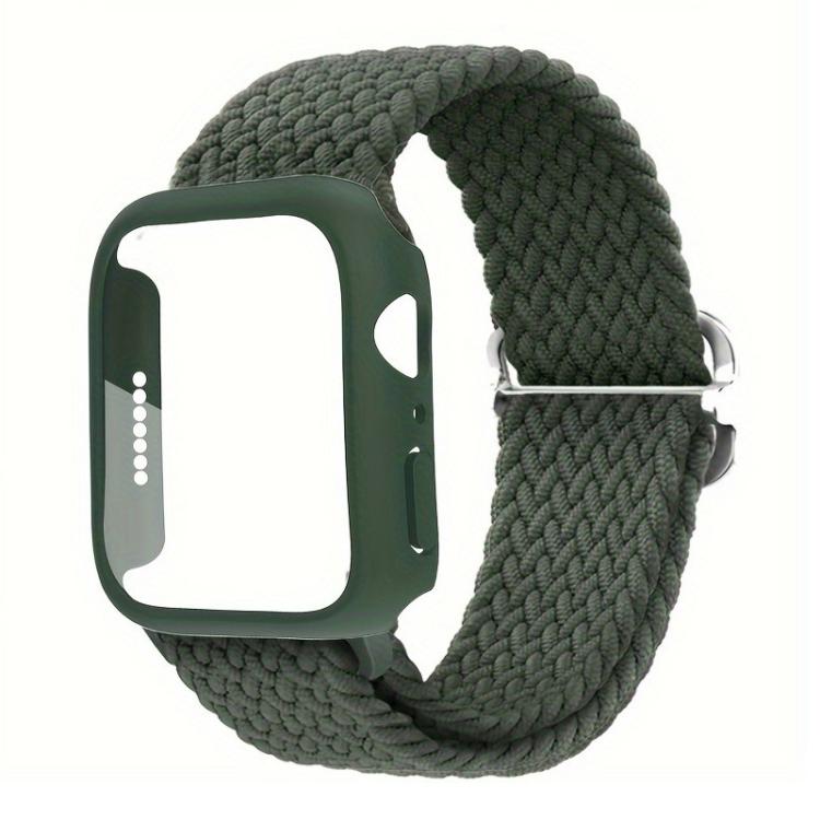 Correa de nailon con hebilla de escalera para Apple Watch Series 40 mm y cubierta de policarbonato esmerilado (verde militar)