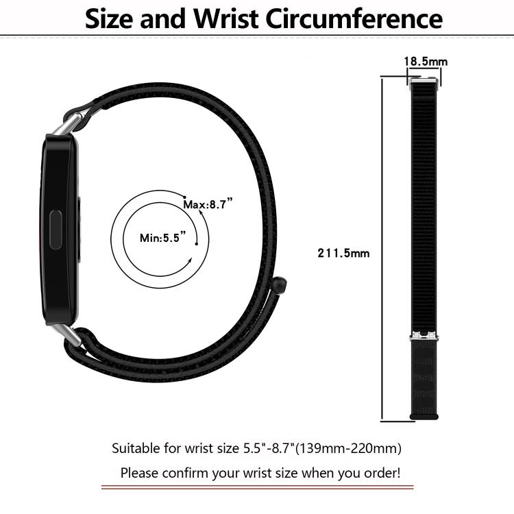 Correa de reloj con cierre de velcro de nailon y película curva 3D para Huawei Band 8/8 NFC (gris y azul)