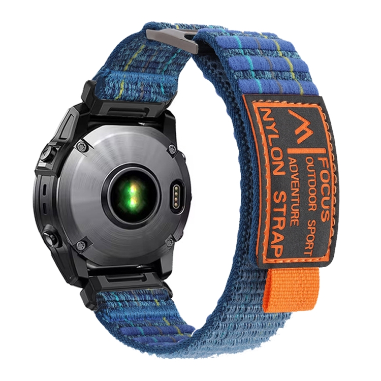 Correa de reloj con cierre de velcro y nailon estilo deportivo de dos secciones para Garmin de 22 mm (azul)