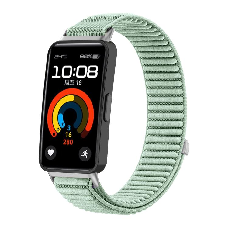 Correa de reloj de nailon tejido con cierre de velcro y interfaz metálica para Huawei Band 10/9/8 (azul agua)
