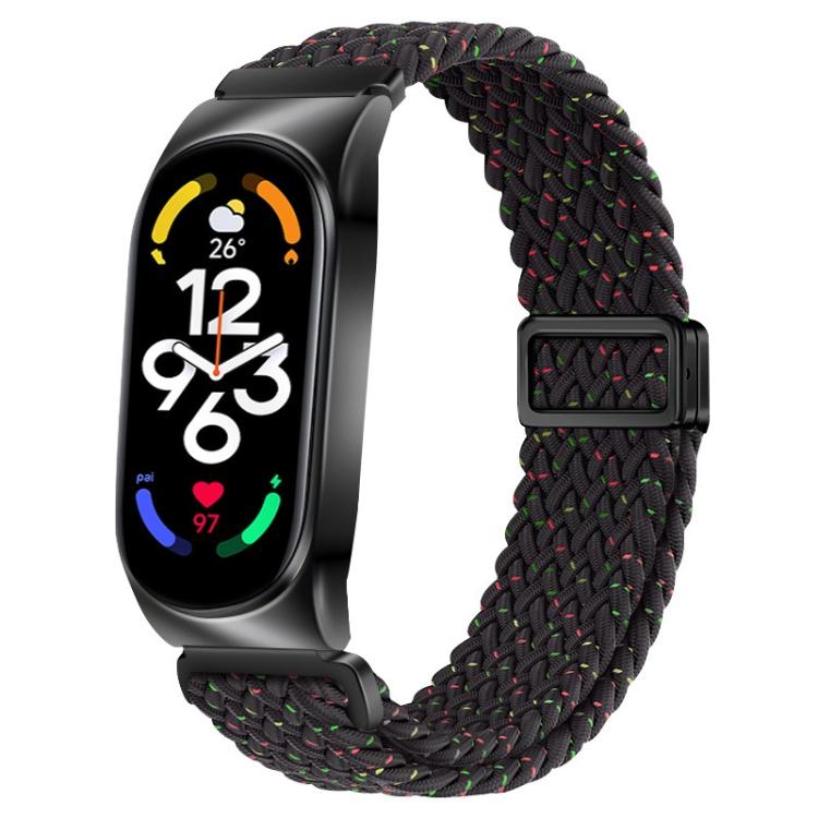 Correa de reloj elástica trenzada de nailon con hebilla magnética y marco de metal para Xiaomi Smart Band 9/8 (negro Starlight)