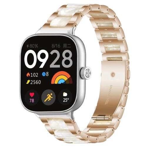 Correa de resina metálica de tres cuentas xDfind para Xiaomi Smart Band 9 Pro/8 Pro/Redmi Watch 5/4 (oro rosa y blanco)