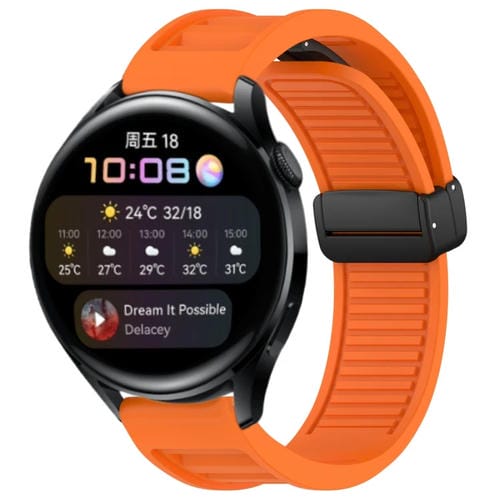 Correa de Silicona con Hebilla Magnética Plegable para Huawei Watch 3 22mm (Naranja)