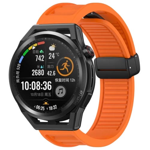 Correa de Silicona con Hebilla Magnética Plegable para Huawei Watch GT Runner 22mm (Naranja)