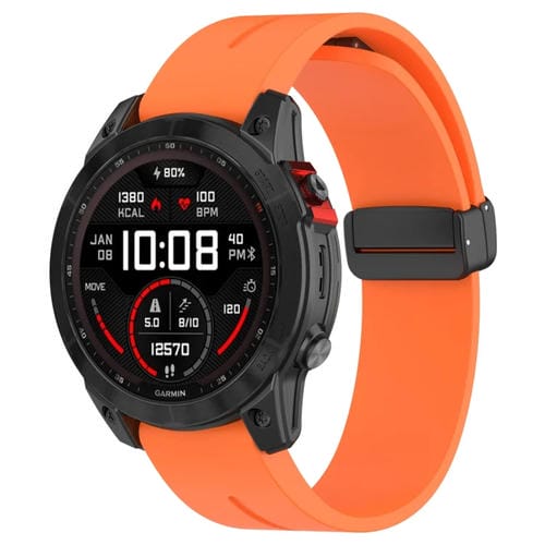 Correa de Silicona con Hebilla Negra Plegable Magnética para Reloj Garmin Fenix 7 (Naranja)