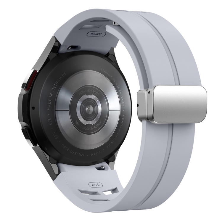 Correa de Silicona Samsung Galaxy Watch 6 40/44mm con Hebilla Plateada y Cierre Magnético (Gris Claro)