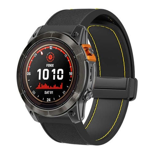 Correa de silicona de liberación rápida con hebilla magnética plegable para Garmin de 22 mm (negro y amarillo)
