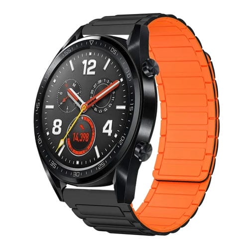 Correa de Silicona Magnética en Forma de I para Huawei Watch GT 22mm (Negra y Naranja)