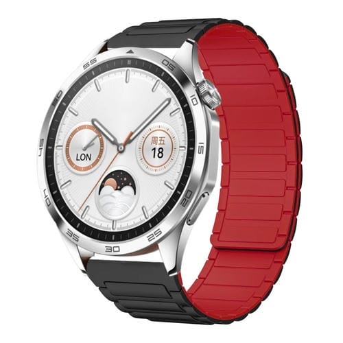 Correa de Silicona Magnética en Forma de I para Huawei Watch GT4 46mm y 22mm (Negra y Roja)