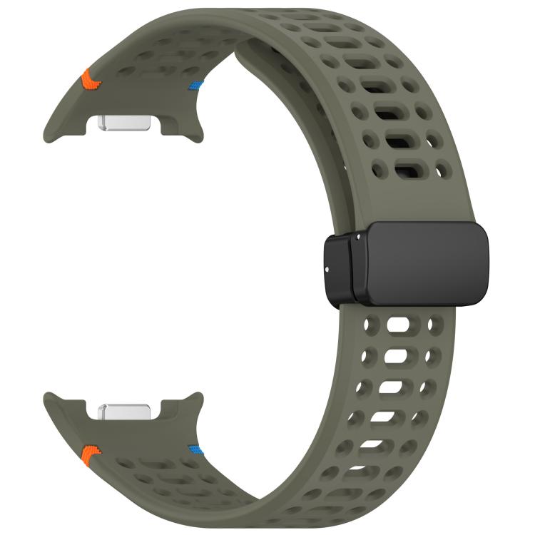 Correa de silicona transpirable con hebilla magnética negra y costuras para Samsung Galaxy Watch8/Watch8 Classic (verde)