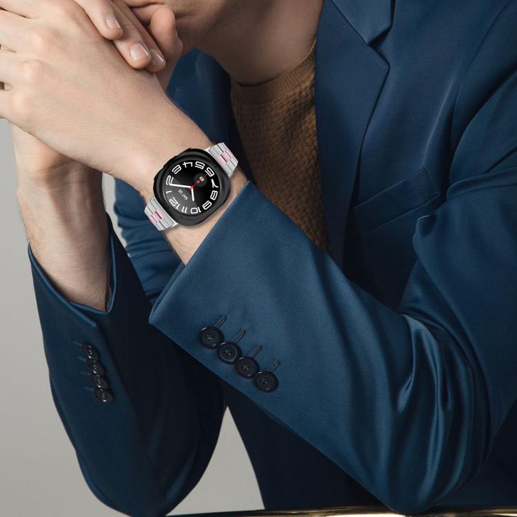 Correa fina de acero inoxidable con tres cuentas para Samsung Galaxy Watch Ultra 47 mm/Ultra 2025 (plata, rosa)
