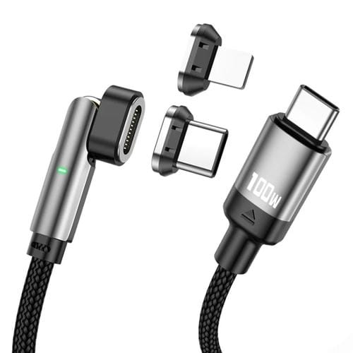 Cable 2 en 1 Enkay PD 100W 27W Rotación 180° Tipo C Magnético Datos 8 Pines Luz Led (1 m)