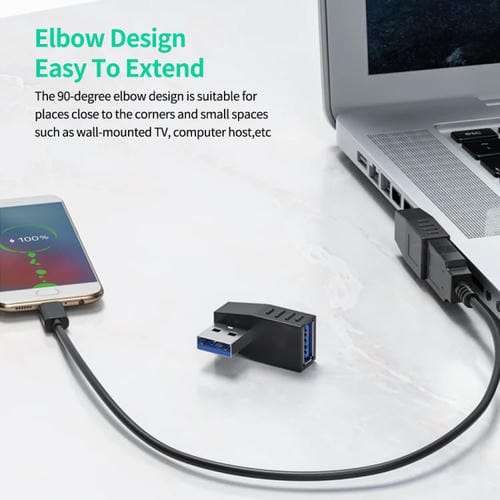 • 1x Adaptador USB 3.0 Enkay Ángulo de 90 Grados Conector Extensor Acoplador Combinado Macho a Hembra Horizontal Izquierdo y Derecho