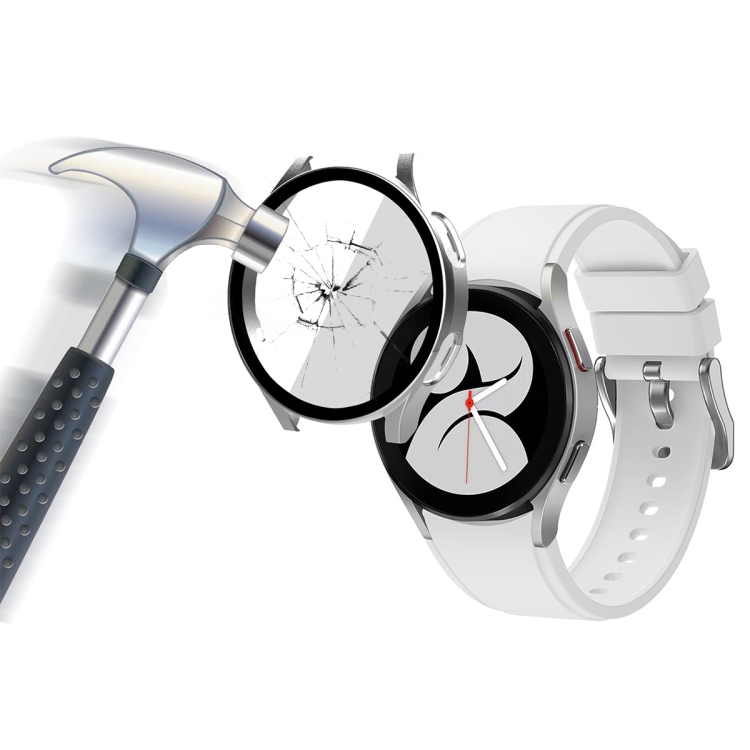 Carcasa Pc Frame + Protector Vidrio Templado Enkay Hat-Prince para Samsung Galaxy Watch4 40mm (Plata)