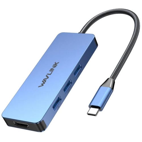 Estación de Acoplamiento Tipo C Wavlink UHP3416 7 en 1 PD100W con Lector de Tarjetas SD/TF (Azul) 4K HD