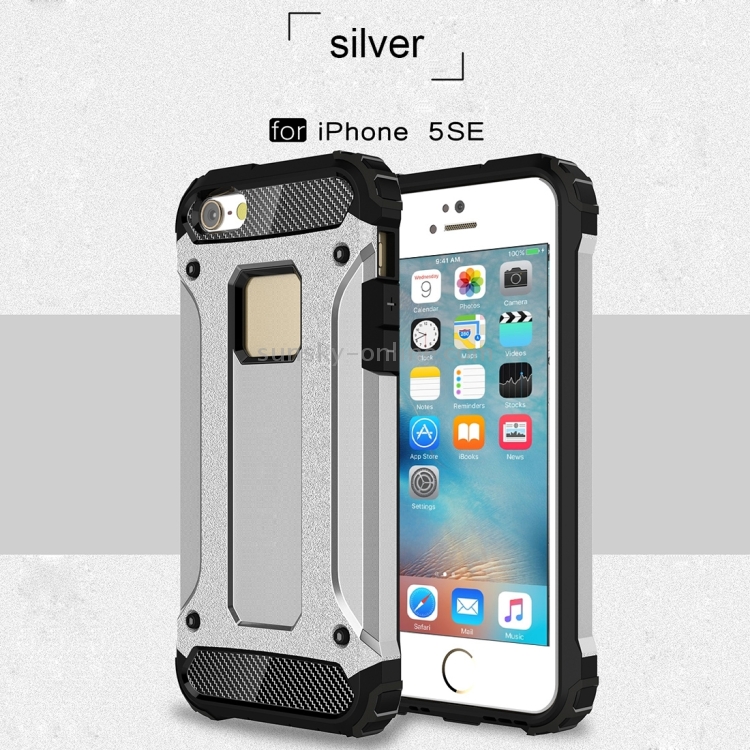 Estuche Combinado Tough Armor TPU + PC para iPhone Se y 5 y 5S (Plateado)